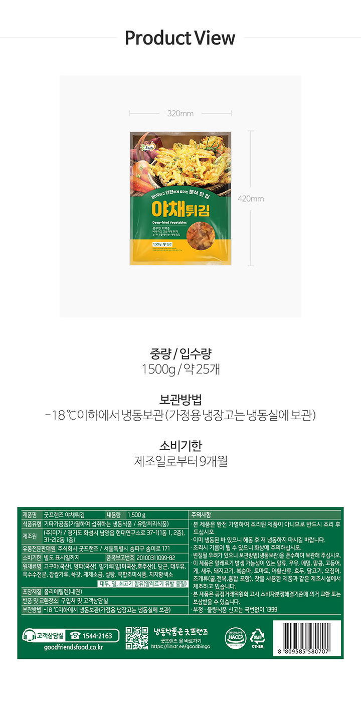 바삭바삭 야채튀김 1.5kg (약 25개입)