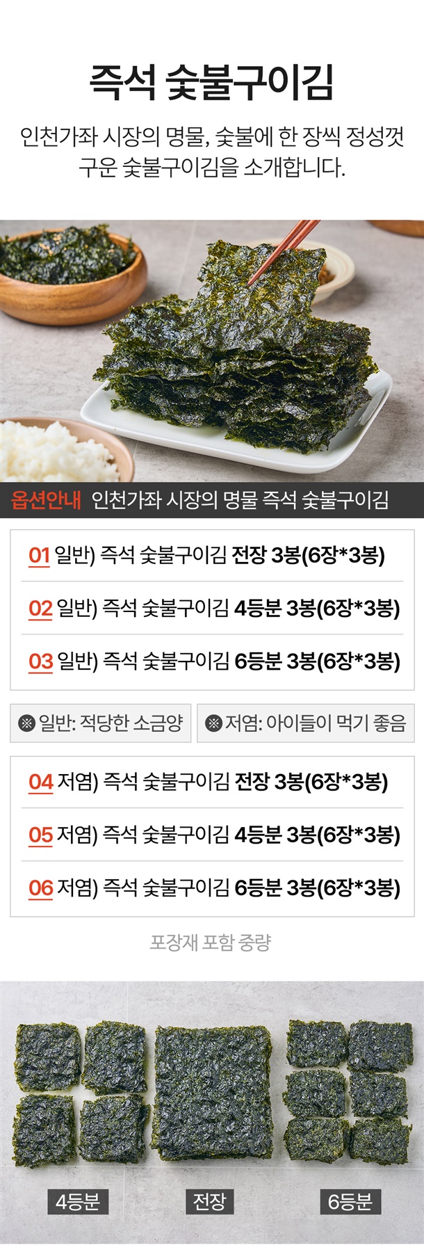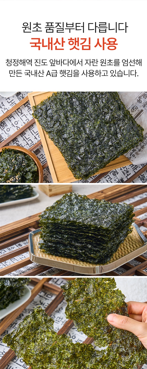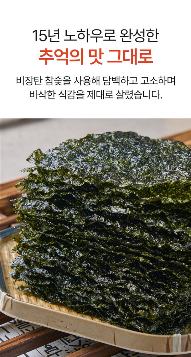 국내산 A급 햇김!! 한장씩 숯불에 구운 즉석 숯불구이김 (일반,저염)