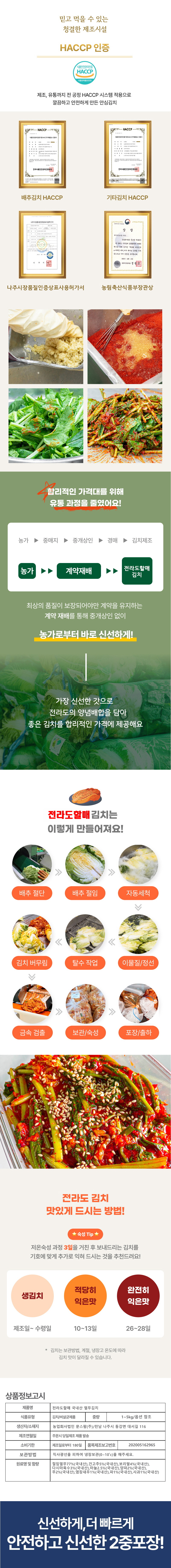 양념 속 가득!! 전재료 국산 100% 전라도 배추김치 2kg