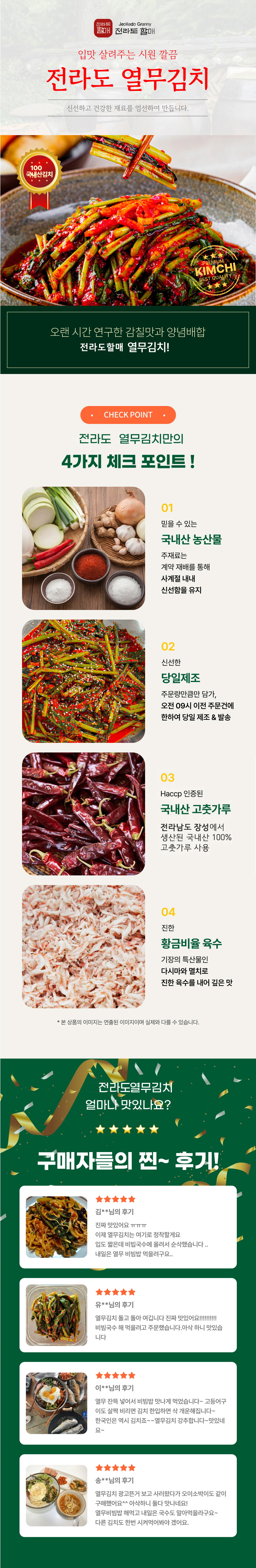 [재구매 300%] 아삭하고 시원한 얼갈이 열무김치 1kg+1kg